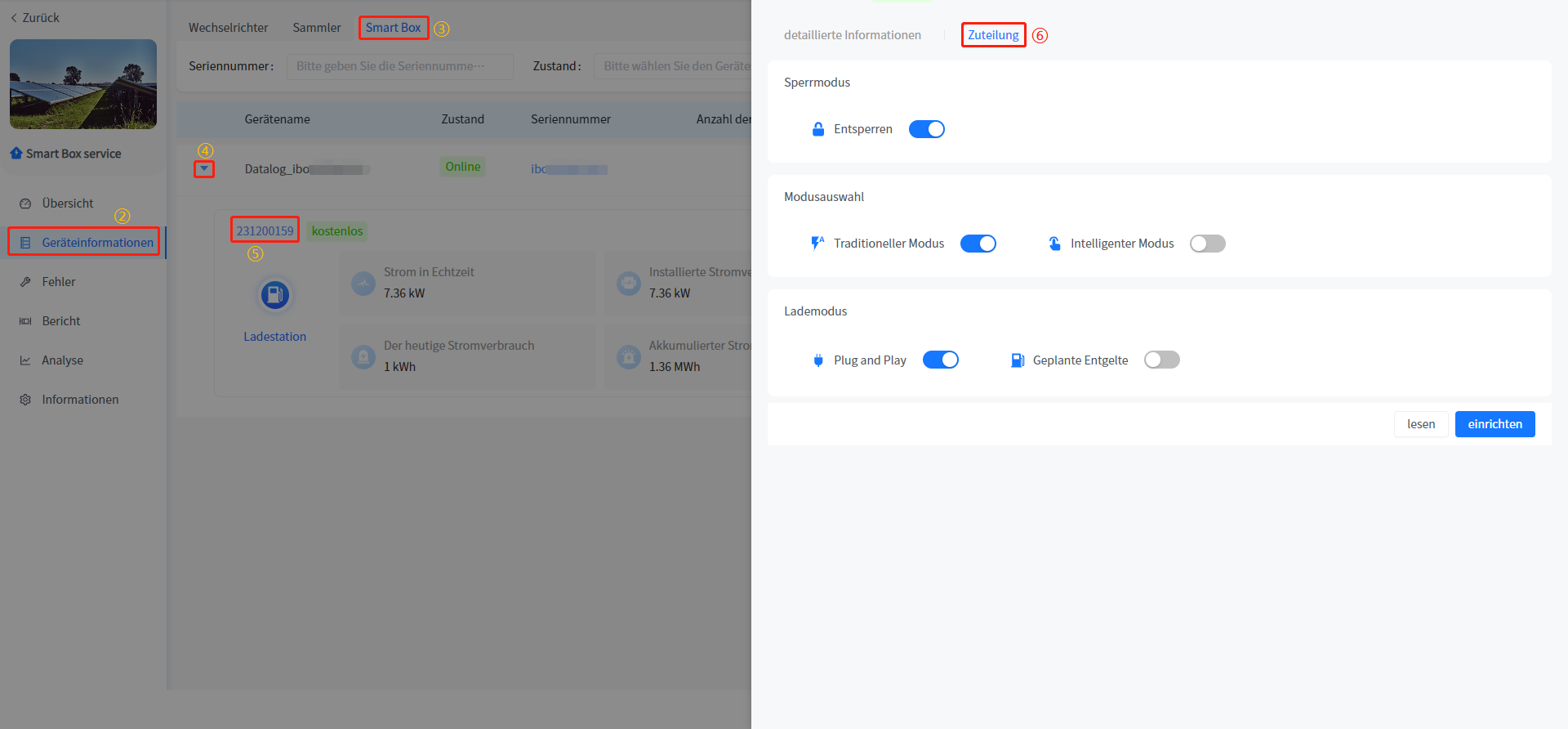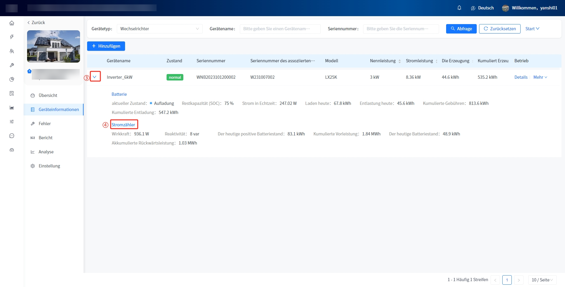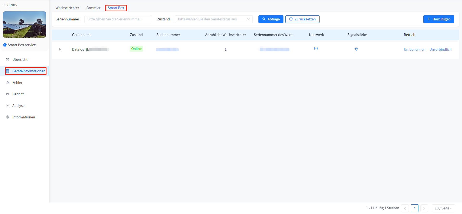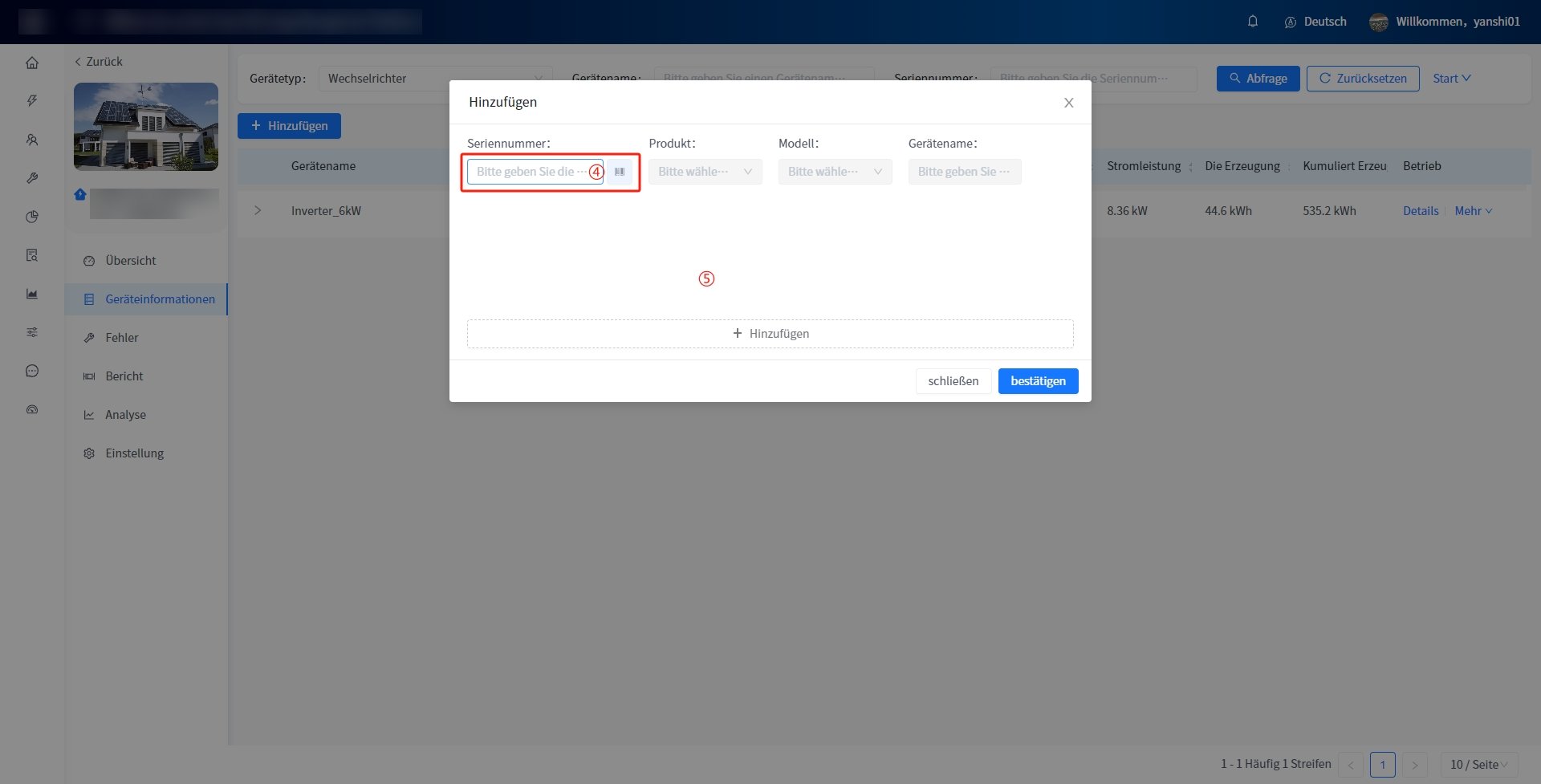 Dieses System unterstützt Vorgänge wie Hinzufügen, Anzeigen, Umbenennen und Lösen von Geräten, die mit dem Kraftwerk in den Kraftwerksdetails verknüpft sind.
