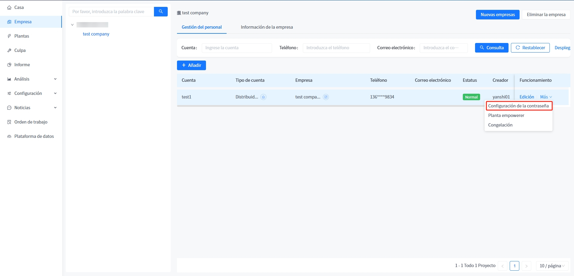 Este sistema admite la creación de diferentes roles para ayudar en el mantenimiento y gestión de centrales eléctricas, distinguiendo a los usuarios de diferentes roles seleccionando diferentes tipos de usuarios en el momento de la creación.